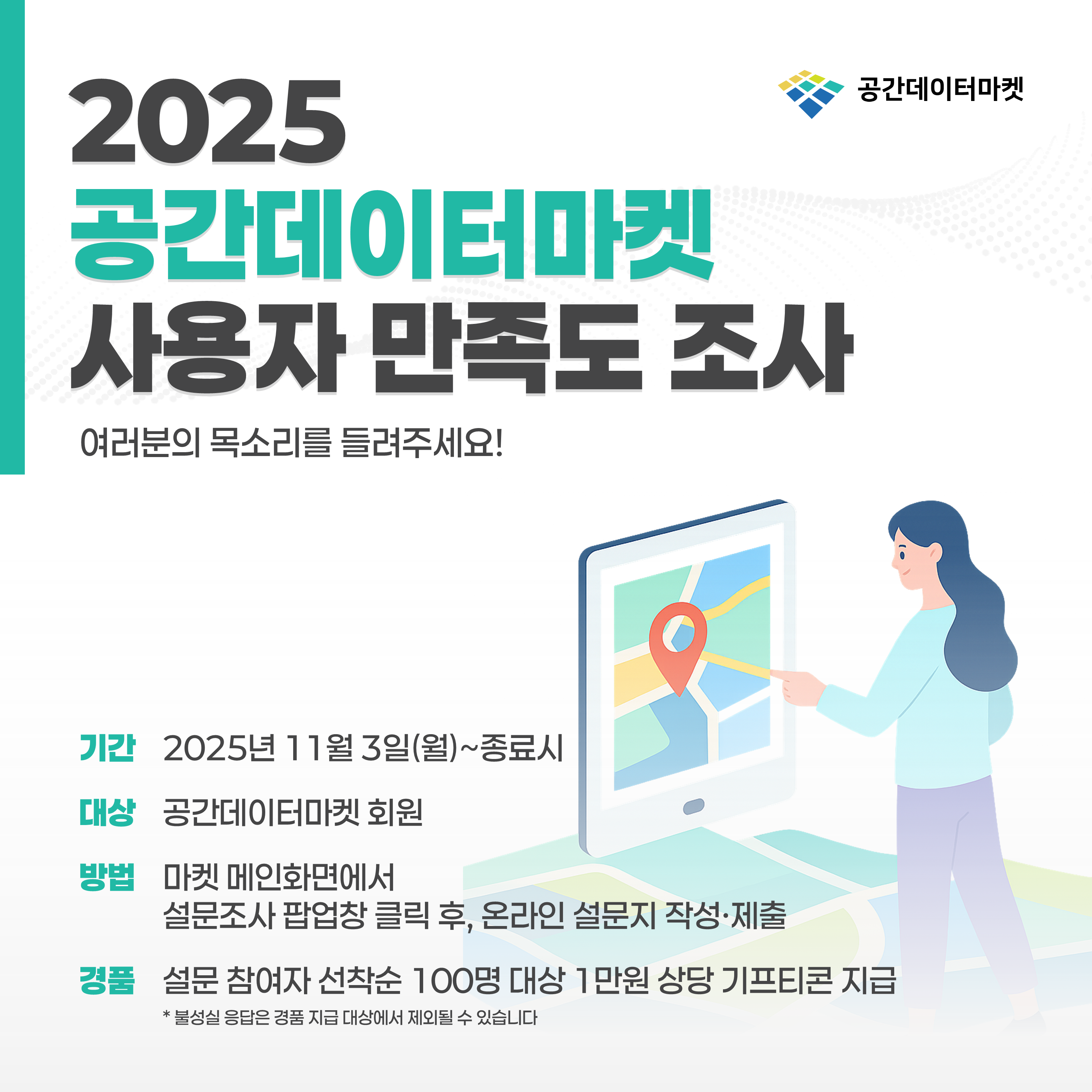 11월 3일부터 공간데이터마켓 사용자 여러분의 의견을 듣는 만족도 조사가 시작됩니다.